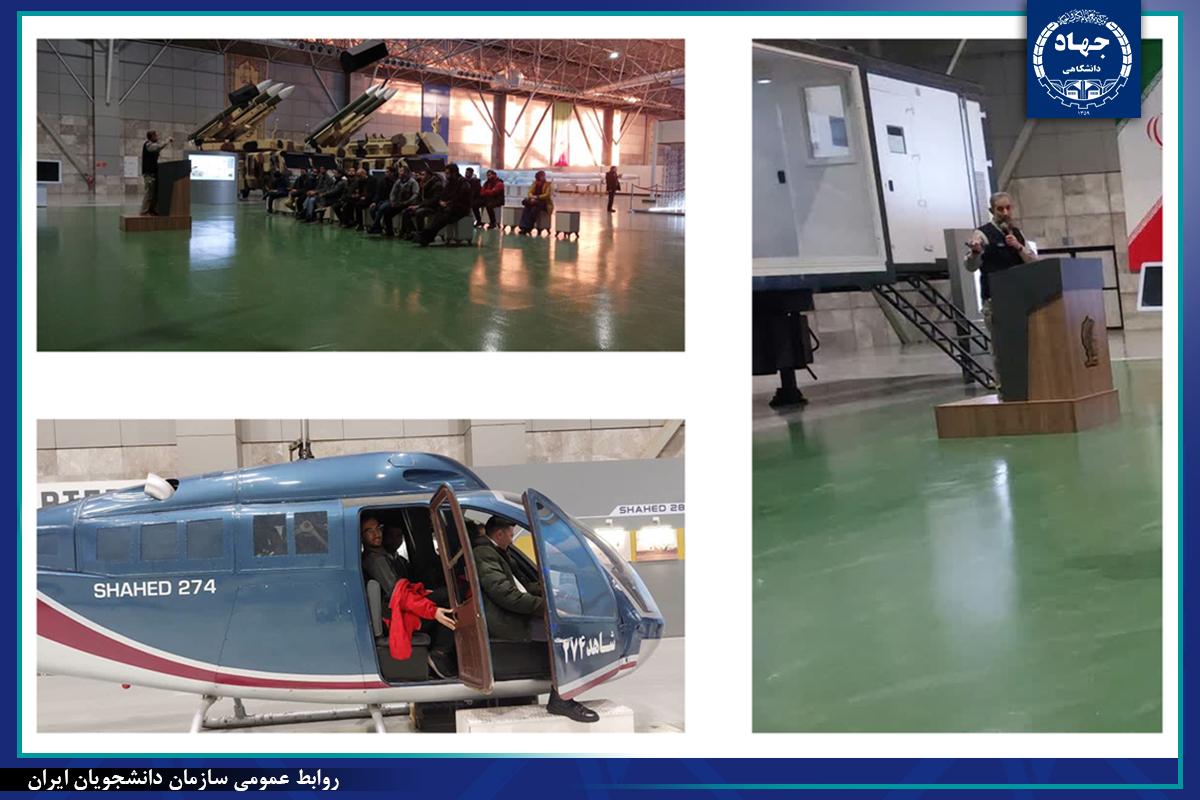 در ابتدای این بازدید، یکی از مسئولان نمایشگاه توضیحاتی درباره برخی از دستاوردهای ارائهشده ارائه داد. سپس دانشجویان با عبور از دالانی موسوم به «الف دزفول» که با صحنههایی از مقاومت مردم دزفول در برابر موشکبارانهای رژیم بعثی عراق در دوران هشت سال دفاع مقدس طراحی شده بود، وارد سالنهای موشکی نمایشگاه شدند.
